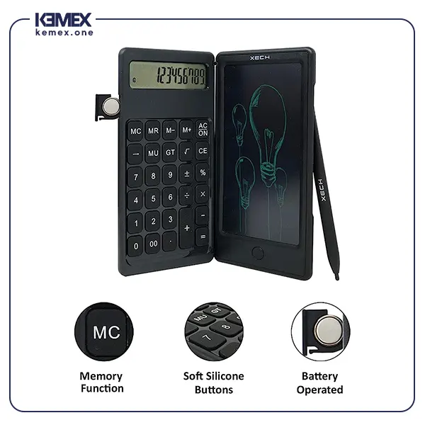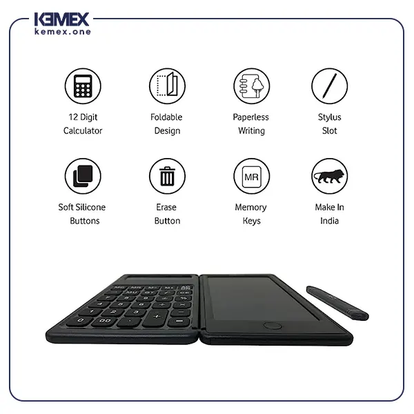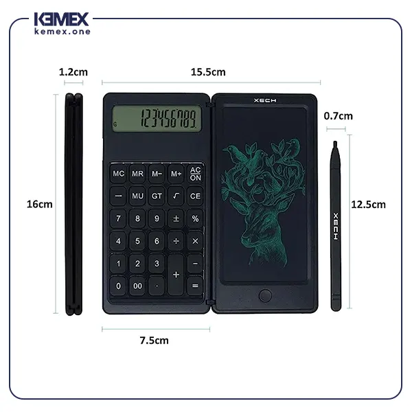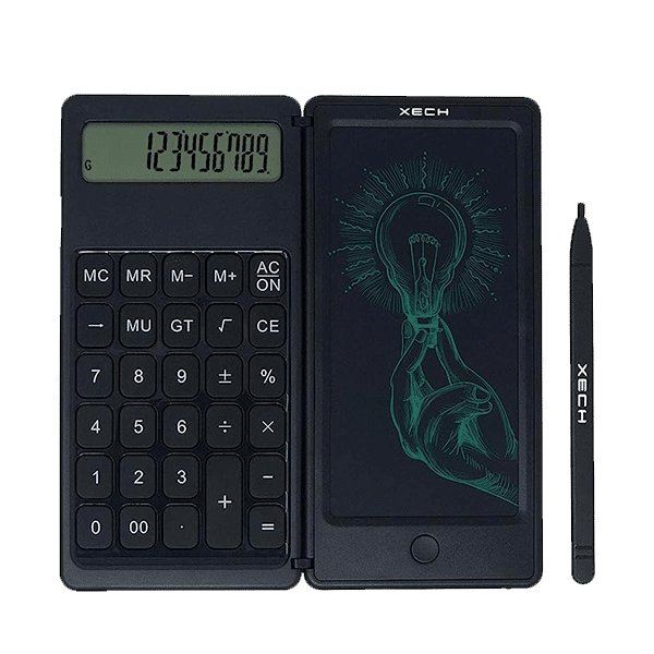ماشین حساب کوچک با کاغذ دیجیتال 5.5 اینچی، یک گجت سه کاره به شمار میرود. کاغذ دیجیتال 5.5 اینچی، قلم استایلوس و ماشین حساب اداری اجزای تشکیل دهندهی این گجت هستند. استفاده از دکمههای سیلیکونی، طراحی تاشو، ضد خش بودن صفحه پد و امکان حمل آسان از ویژگیهای دیگر این گجت هوشمند است.