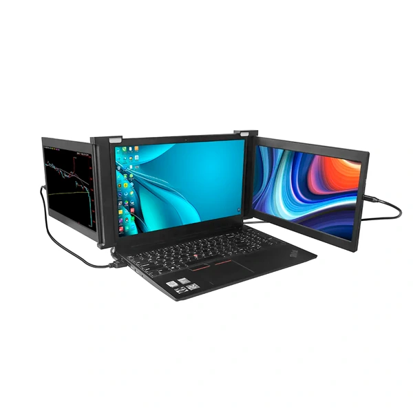 بسیاری از تحلیل گران بازار بورس، گیمرها، تدوینگرها و طراحان نیاز به چند صفحه نمایش همزمان فعال دارند. مانیتور سه گانه قابل حمل 10 اینچی، گجتی است که دقیقاً همین کار را برای شما انجام میدهد. کافی است این مانیتور را از قسمت پنل وسط روی صفحه مانیتور خود سوار کنید. به این شکل مانیتور مرکزی، همان مانیتور اصلی لپ تاپ خواهد بود و دو مانیتور جانبی دیگر در چپ و راست این مانیتور خواهید داشت.