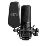 استودیویی کامل: BOYA BY-M1000 با داشتن دیافراگمی به بزرگی 1.3اینچ، سه حالت قابل تنظیم برای ضبط صدا( Cardioid، Omni-directional و Bi-directional)، بدنهی تمام فلزی محکم و همچنین سوییچ پد 10 دسیبلی، بهترین گزینه برای ضبط حرفهای صدا هست.