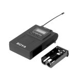 میکروفون وایرلس بویا دارای یک فرستنده داخلی، گیرنده قابل نصب روی دوربین و دو میکروفون دو سویه، آداپتور، یک کابل خروجی “8/1 به XLR، یک کابل خروجی 8/1 به “8/1 و کیف حمل است.