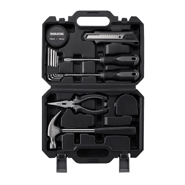 همه چیز در کنار هم: جعبه ابزار فوق دارای 12 ابزار متفاوت است. متر، کاتر، پیچ گوشتی، چسب، دم باریک، سری کامل آچار آلن و چکش از ابزارهای موجود در این جعبه محسوب میشوند.