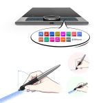 صفحه تبلت این قلم نوری از 8 کلید میانبر هم بهره میبرد که قابل شخصیسازی است و برای طراحان امکان ویژهای محسوب میشود. نکتۀ دیگر اینکه دکو پرو سری ام دارای یک پیچ چرخان است که در نقاشی دیجیتال و کارهای طراحی به کارتان خواهد آمد.